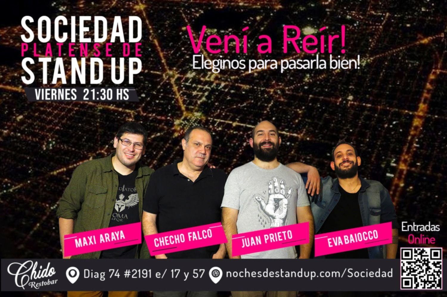 La Sociedad está compuesta por Maxi Araya, Checho Falco, Juan Prieto y Evaristo Baiocco. Arrancaron en La Enseña de Las Tres Ranas, donde hicieron 5 temporadas consecutivas, ante el cierre del local completaron la temporada entre Café Frankville y el Teatro Metro.En el 2019 estuvieron en el Club de Comedia y ahora llegan a Chido para volar de risa el 2020.