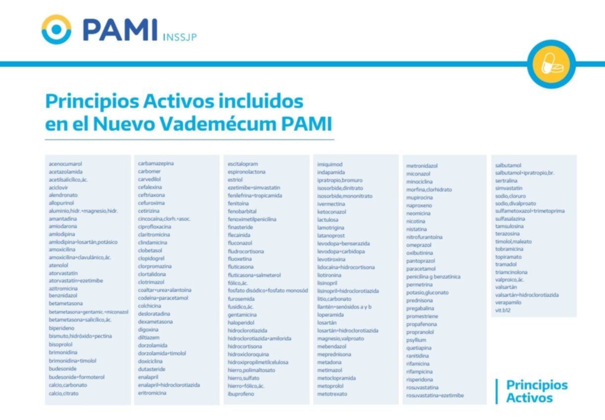 Hasta ahora los afiliados del PAMI contaban con cuatro medicamentos gratis y el resto debía pasar por un trámite de excepción. "Ahora no tenemos limitación salvo algunos medicamentos que no están en la lista pero que de todos modos serán cubiertos vía excepción", dijo Leyria. Se requerirá en esos casos una historia clínica con mayor información para llevar un control, pero de todos modos se cubrirán.
