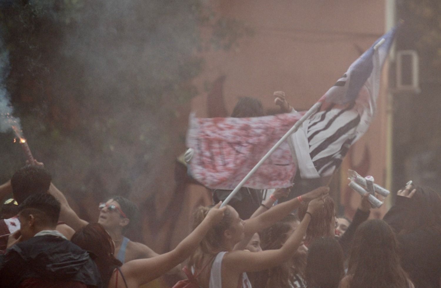 Con bengalas, bombas y coloridas banderas con el número de promoción y los nombres del curso, distintas divisiones de egresados coparon principalmente Plaza Moreno, en lo que se transformó en una tradición de los colegios de la ciudad.