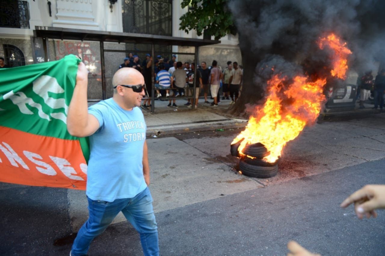 El momento de mayor tensión se dio después de que los manifestantes quemaran gomas en plena avenida 7 e intentaron ingresar a las oficinas. Hubo algunos golpes y petardos contra el frente del edificio donde la la aplicación se aprestaba a realizar la reunión de capacitación.