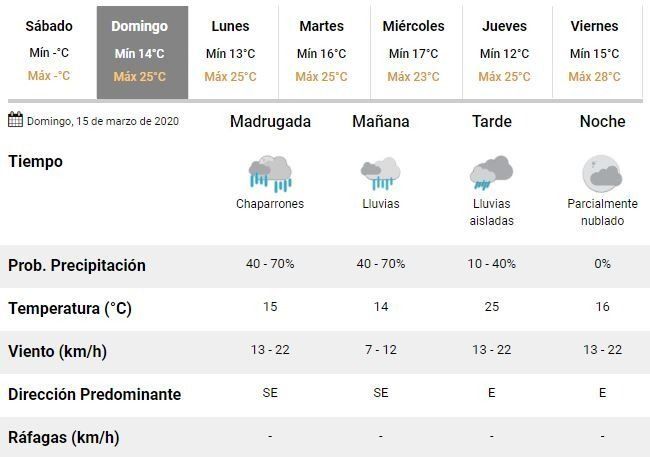 Después de un sábado pasado por agua, las condiciones del tiempo parecen estar lejos de mejorar. De acuerdo con los expertos, se espera que el tiempo desmejore a lo largo de la mañana del próximo domingo y se mantenga con inestabilidad durante toda la jornada.
