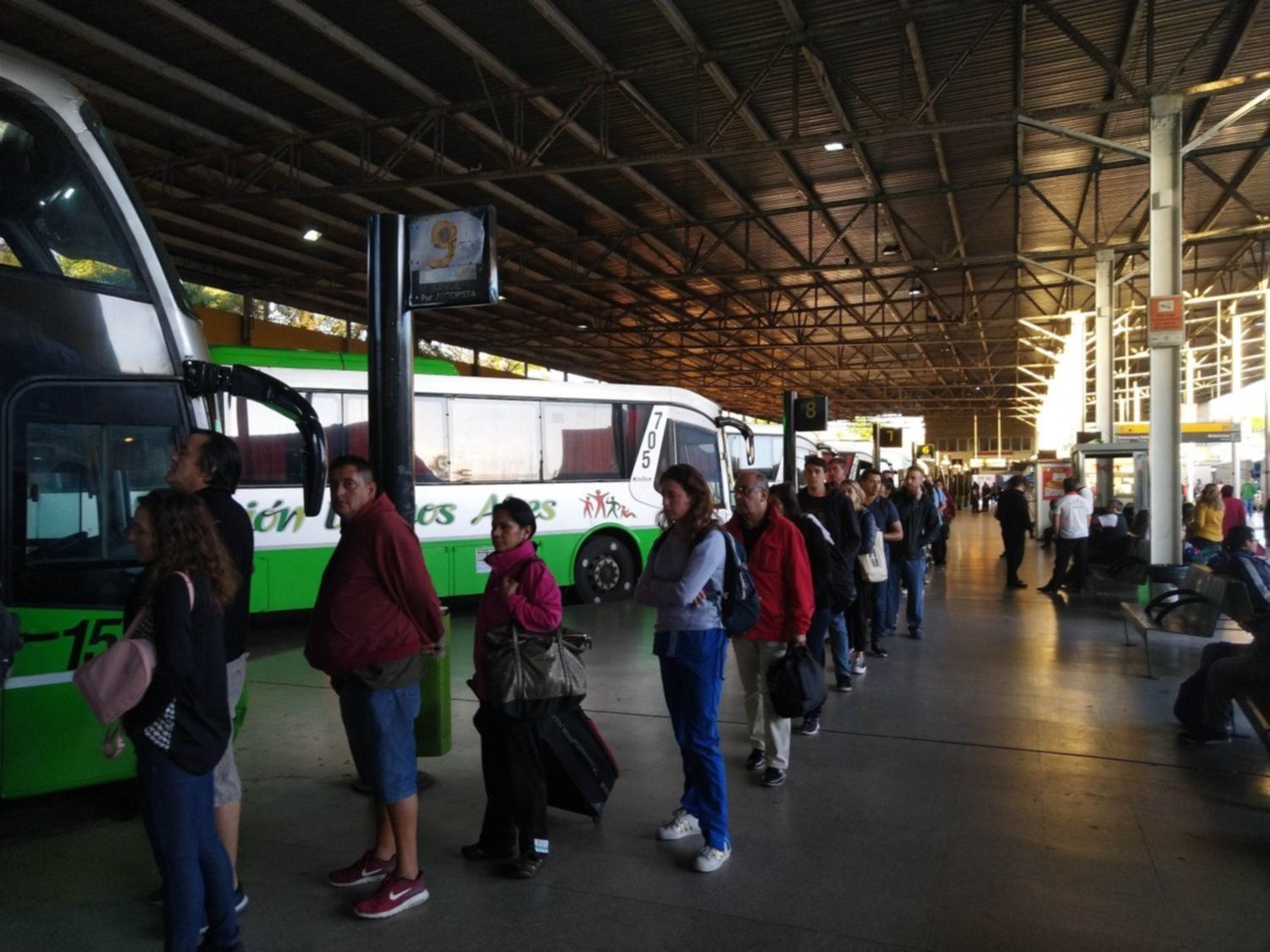 El transporte público también se vio afectado y la cantidad de pasajeros fue claramente menor. La terminal de ómnibus mostró una postal extraña para ser un día de semana. Solamente se registraron largas colas para tomar el servicio de colectivos que va hacia Capital Federal.