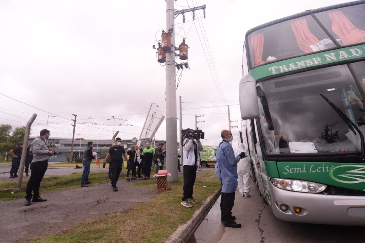 Después del primer contacto con las autoridades, el micro fue conducido hacia el Estadio Único, en 25 y 32, en medio de un estricto operativo sanitario. A bordo viajaban 52 personas, incluyendo a los choferes y coordinadores.