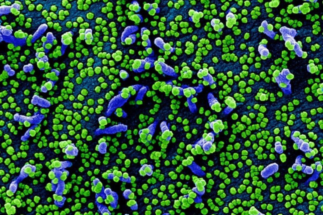 Los cientos de puntos sobre cada una de ellas (de diferente tipo, de ahí su forma distinta) son minúsculas partículas del virus, con un tamaño de entre 120 y 160 nanómetros de diámetro.