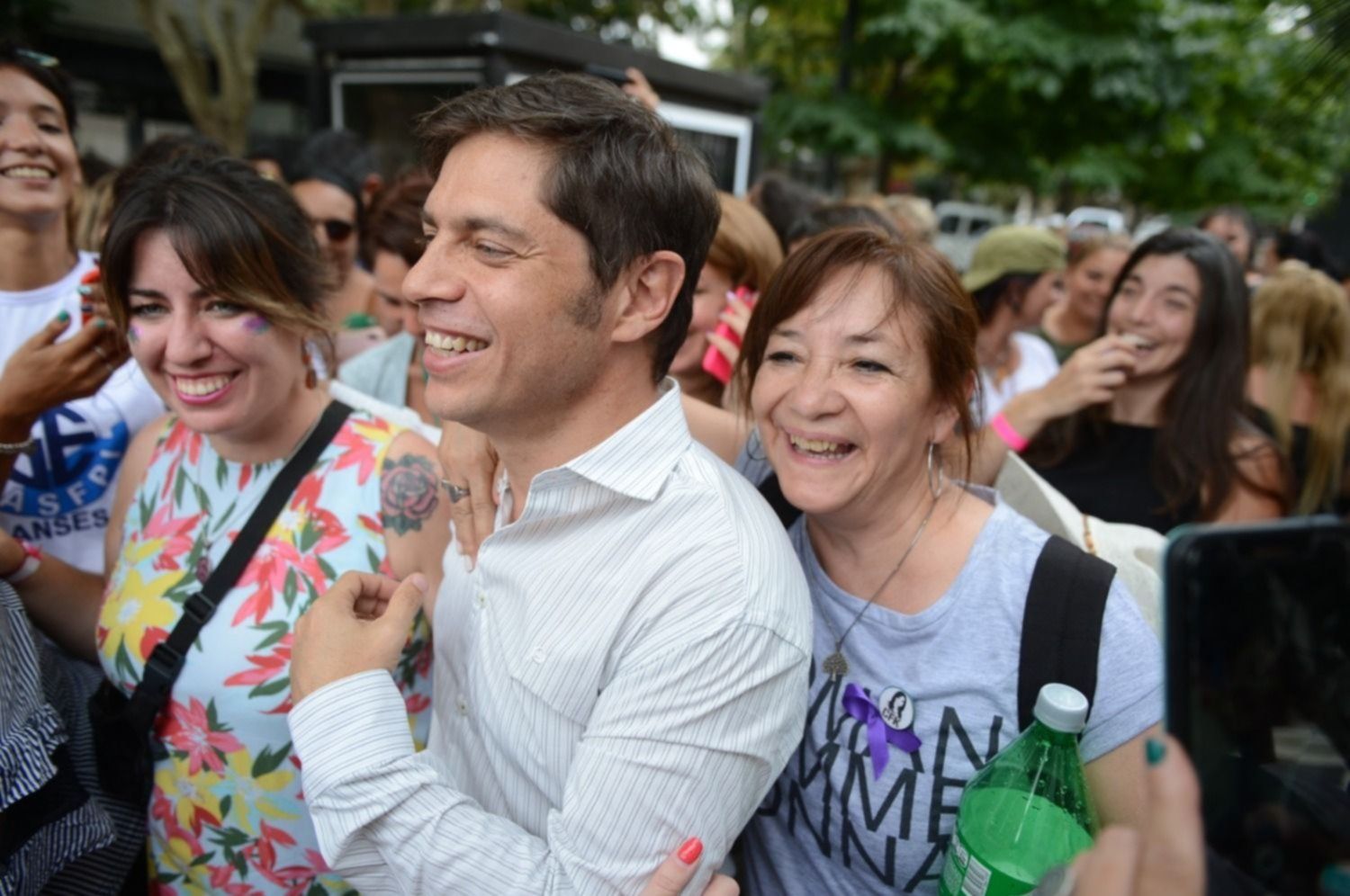 Muchas de ellas aprovecharon para acercarse a conversar o sacarse fotos con el mandatario, quien prestó especial atención a dos mujeres platenses y luchadoras que allí estaban.