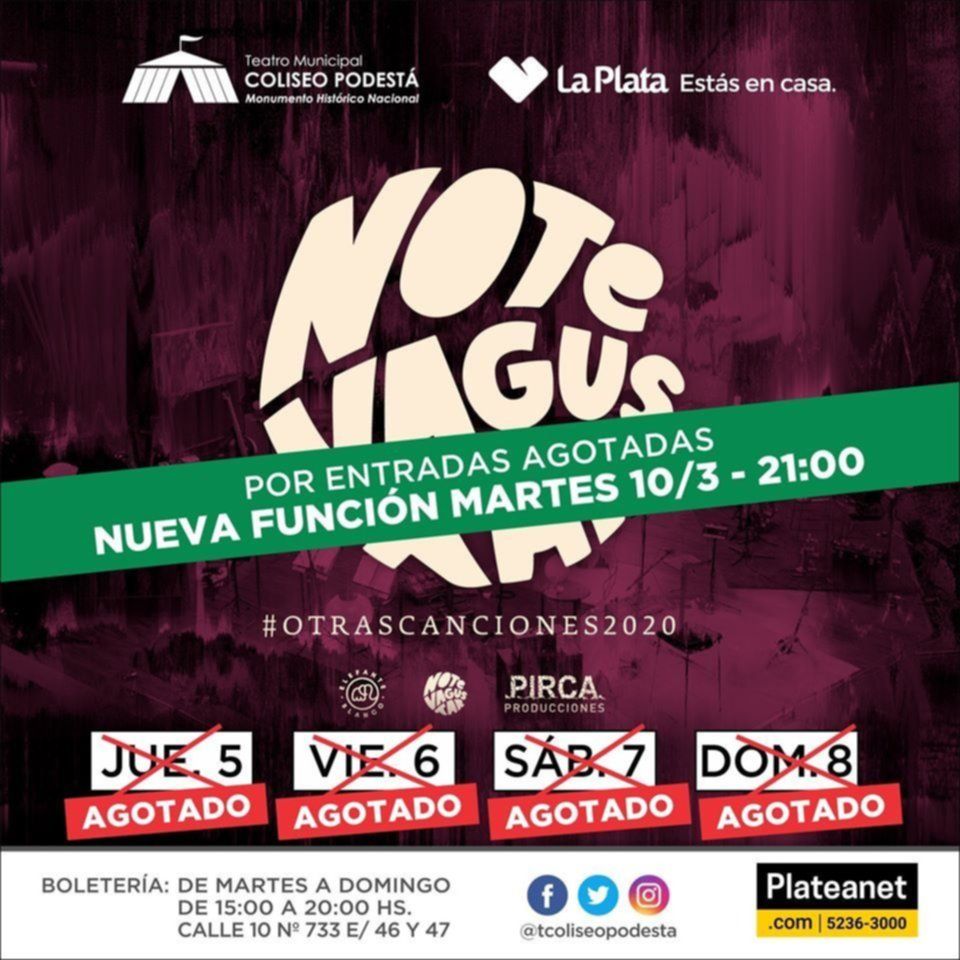 Después de haber finalizado el 2019 con más de 100 conciertos en toda la región , NTVG regresa a Argentina en este 2020 para recorrer las ciudades del país que quedaron por visitar con su gira acústica Otras Canciones 25 años.