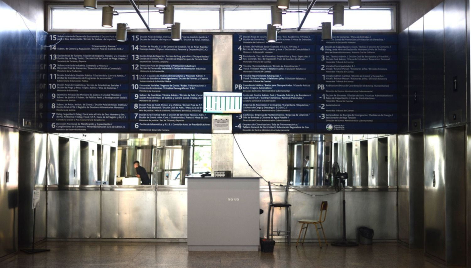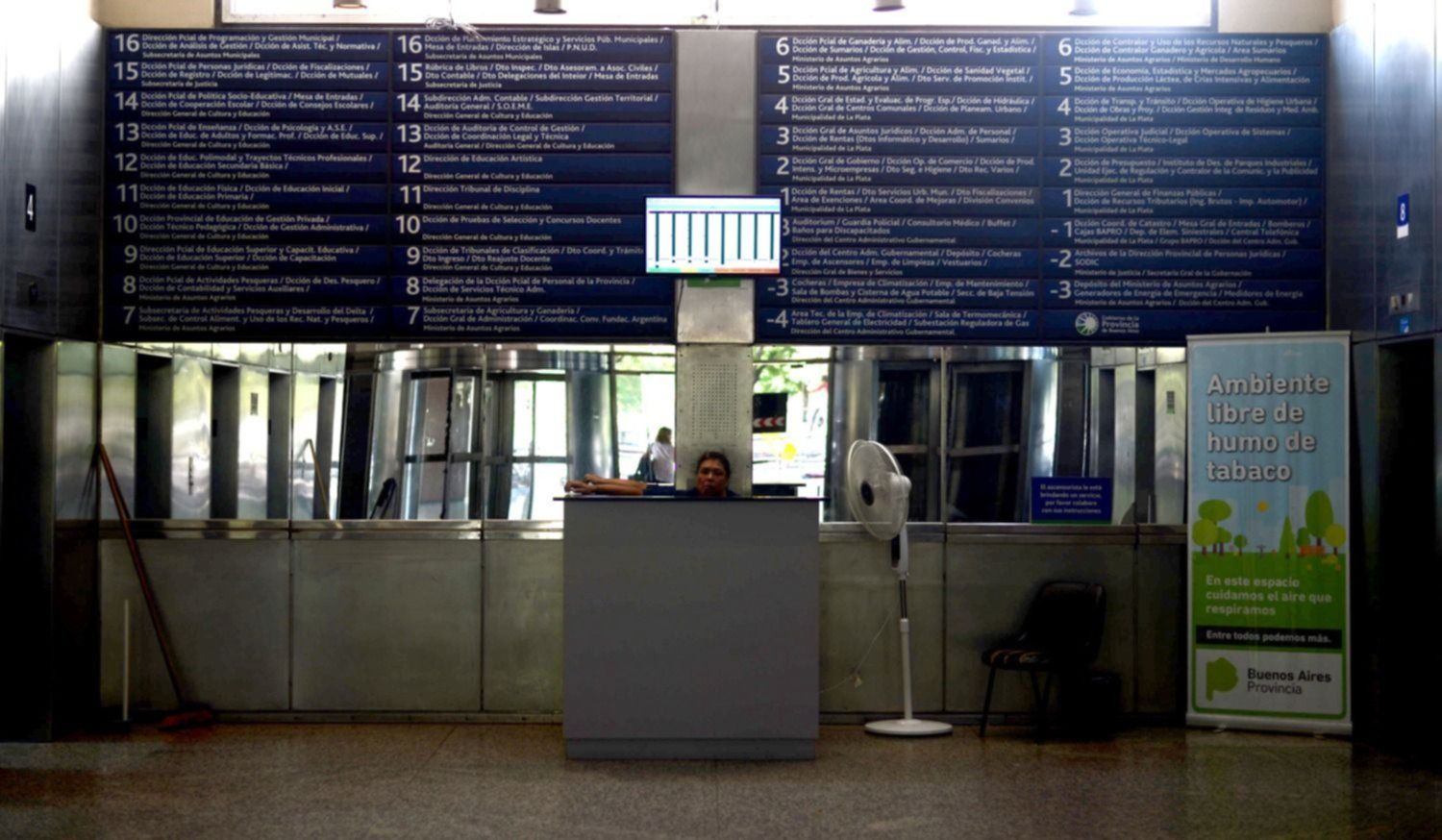 “Cada gestión aplica sus propios cambios en la estructura de Ministerio y eso repercute en el ordenamiento de las oficinas”, cuenta a 0221.com.ar uno de los responsables de mantener los ocho ascensores de una de las torres. Lo hace para aclarar que el enorme cartel ordenador que está planta baja está desactualizado. Quien quiera saber que hay en cada piso tendrá que preguntarle a él o a otros de los empleados más antiguos.