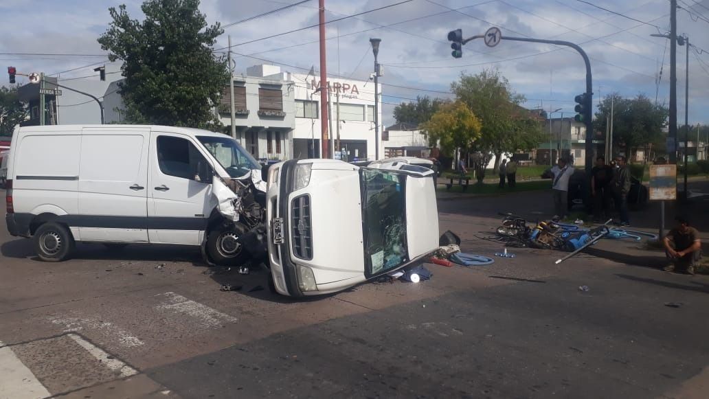 Según puede verse en las imágenes, la camioneta realizó una imprudente maniobra al doblar a la izquierda sobre la transitada avenida y fue embestida de lleno por la traffic que circulaba a gran velocidad.