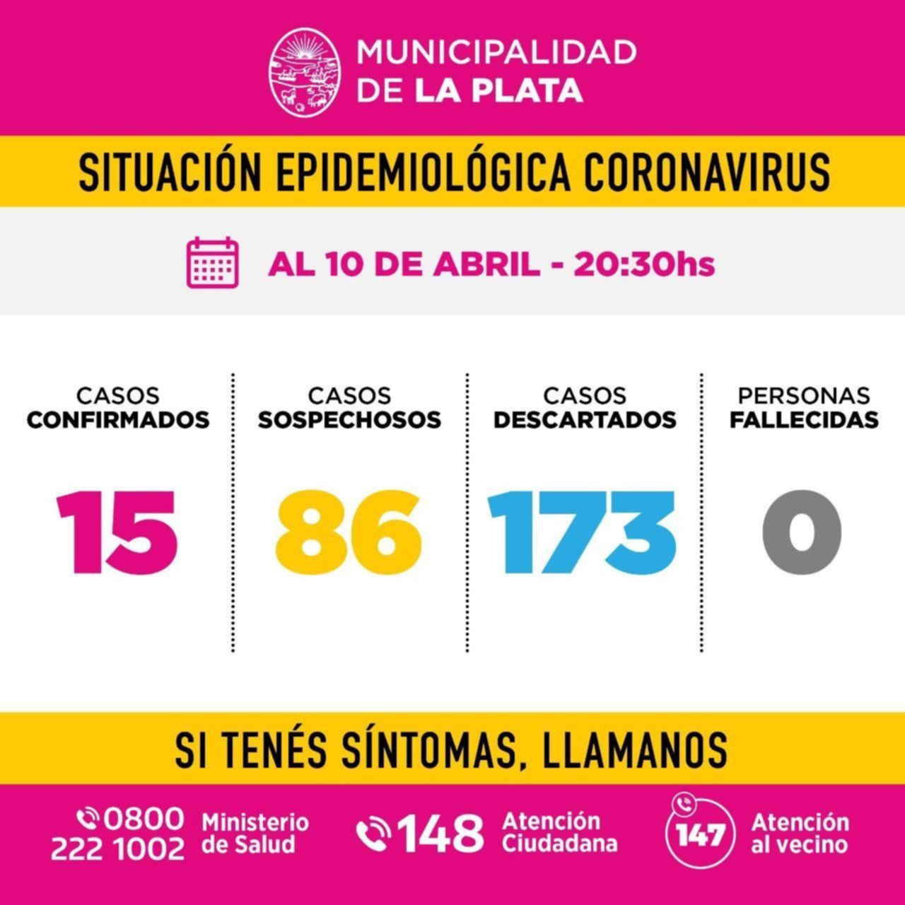 Las autoridades locales también informaron que todavía hay 86 casos que se encuentran en estudio y cuyos resultados se irán conociendo durante los próximos días, por lo que la cantidad de casos registrados en La Plata aún podría ir en aumento.