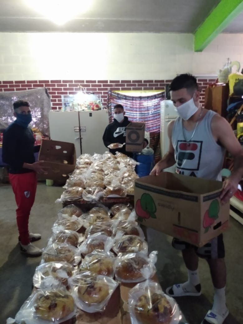 Para la producción utilizaron harina, azúcar, levadura, huevos, fécula de maíz, esencia de vainilla, cerezas y chocolate. Luego, extremando las medidas de higiene y seguridad que la situación sanitaria requiere, empaquetaron individualmente las roscas.