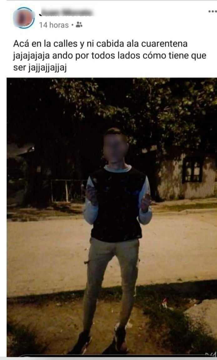 Como contó 0221.com.ar, el implicado -de 21 años- se había jactado en las redes de no cumplir con la norma y había sido detenido el pasado domingo 22 de marzo. Tres días después de ese hecho, volvió a ocurrir lo mismo: “Acá en las calles y ni cabida a la cuarentena jajajaja ando por todos lados como tiene que ser jajajajaja”, publicó en Facebook.