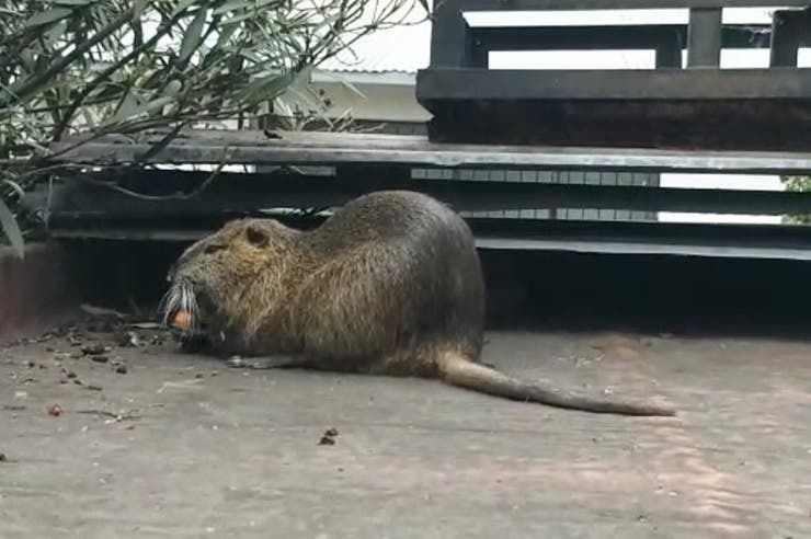 Se trata del coipo, también conocido como falsa nutria. Este es un roedor de gran tamaño de la familia de los castores y las nutrias. En un video que se viralizó se puede ver a un ejemplar que come una zanahoria mientras camina por una terraza en el barrio porteño de La Boca.
