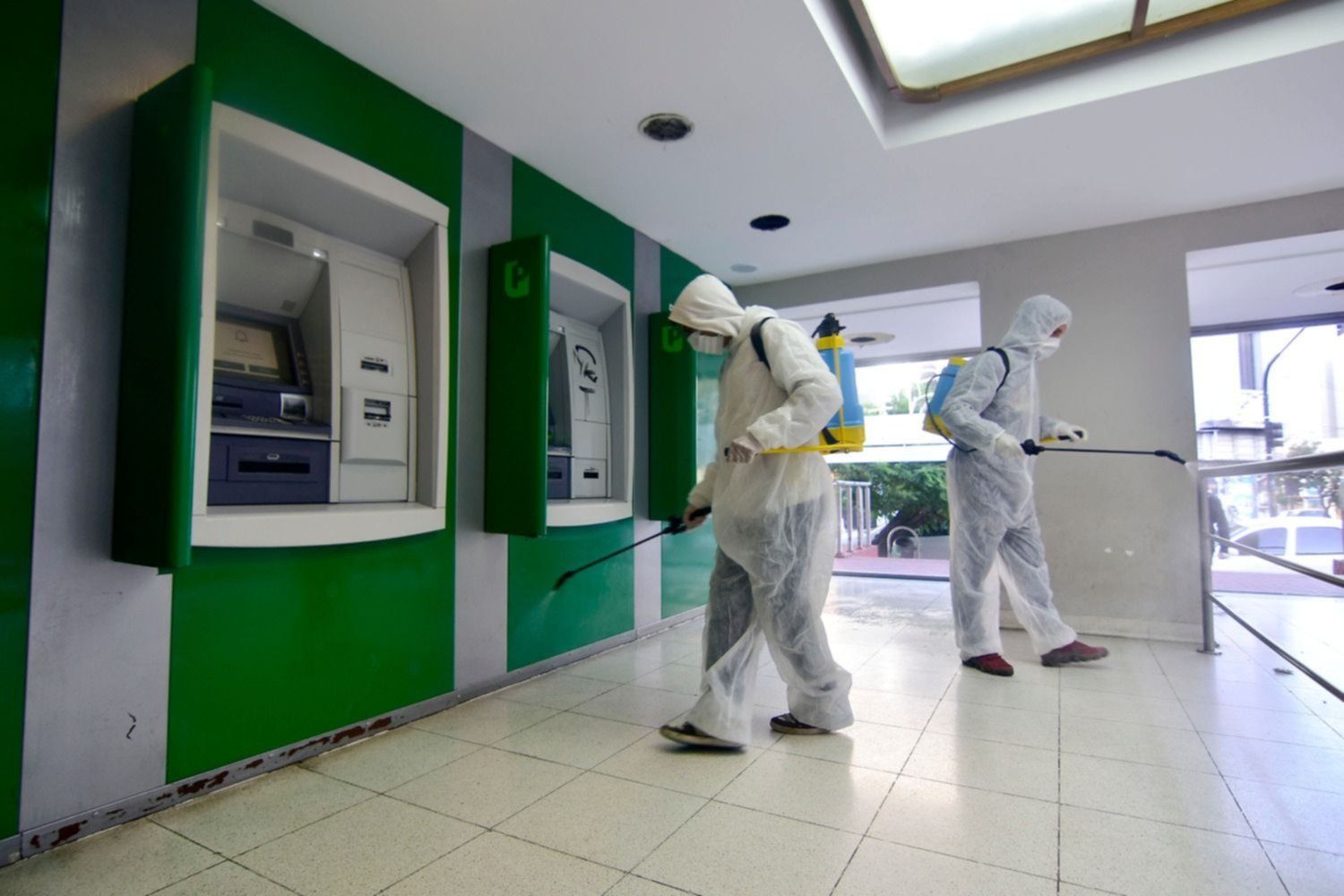 En este contexto, las autoridades recordaron que como parte de las medidas de prevención para prevenir el avance del coronavirus de la región, la Secretaría de Espacios Públicos y Gestión Ambiental continúa con las tareas de desinfección en los cajeros automáticos de la ciudad, aplicando un preparado de agua y cloro en todas las superficies de contacto.