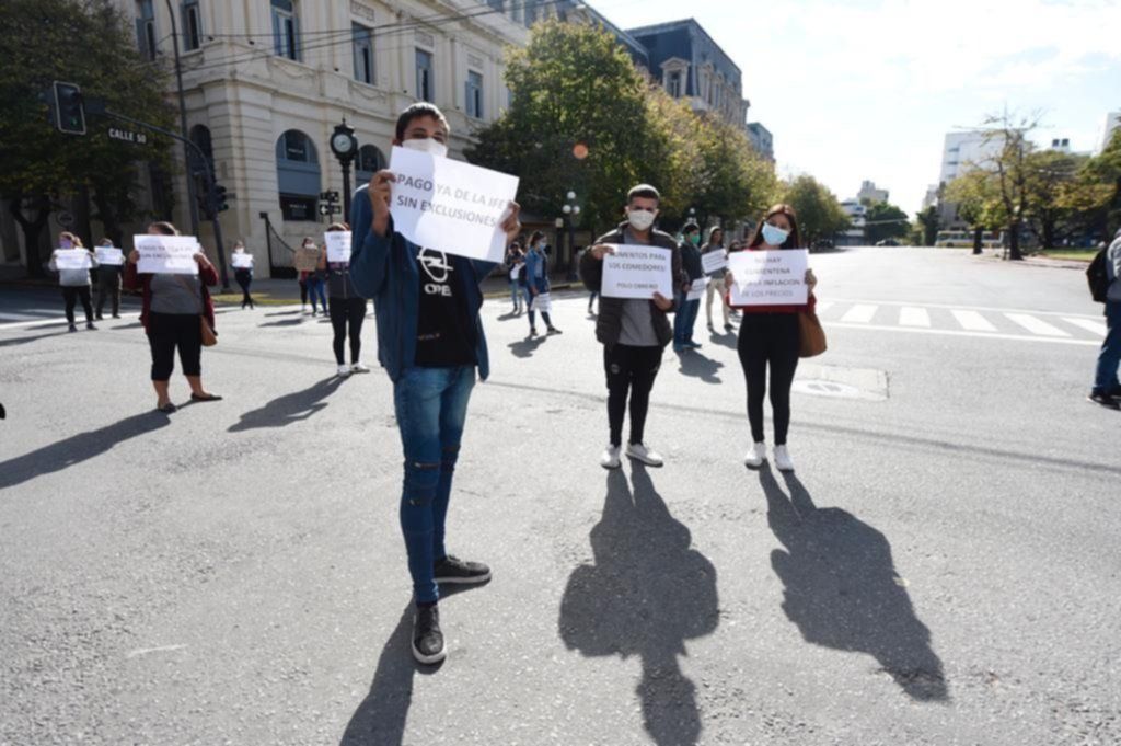 "¡Con hambre no hay cuarentena!", fue el grito con el que encabezaron esta protesta marcada por la distancia social. "Vamos a la calle a levantar nuestros reclamos el 1° de Mayo, día Internacional de los y las obreras del mundo, para que la crisis no la paguemos los trabajadores con nuestra vida! Y para que la paguen los capitalistas con la acumulación de sus ganancias", finalizaron.