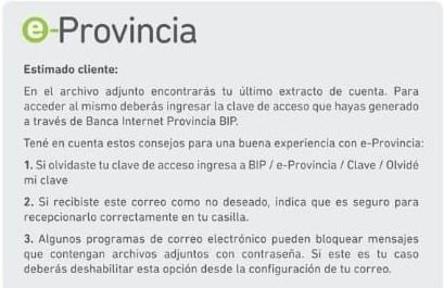 “Si recibiste en tu correo electrónico un Extracto de Cuenta Informativo del mail [email protected] ¡no te preocupes!, es nuestro servicio de comunicación digital”, publicaron en la cuenta oficial de Facebook del Banco Provincia, descartando algún tipo de estafa.