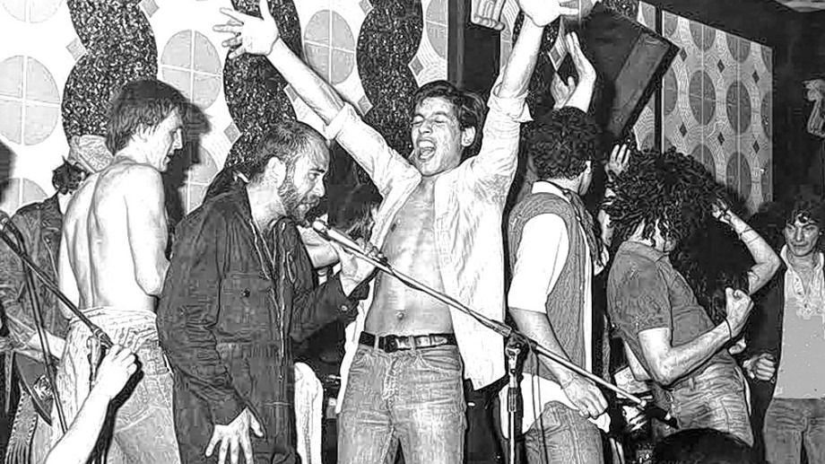 Muchos pibes de remeras ya están dispersos por la calles aledañas. Corren hacia Plaza Moreno o se refugian donde pueden. Otros prefieren volver a entrar porque los convoca el sonido de la guitarra hipnótica de Skay Beilinson, el único que no se había ido. Es un solo cadencioso con el que el músico de Tolosa parece aplacar a las fieras. Se prolonga durante cuatro o cinco minutos hasta que el resto de la banda empieza a volver.