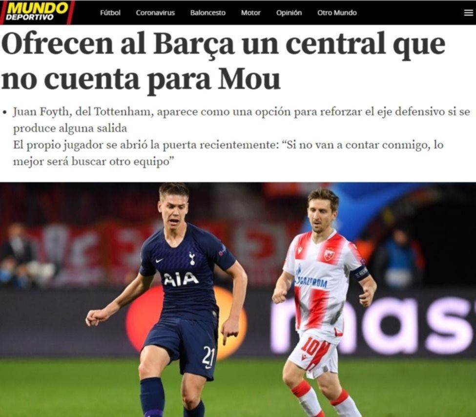 Una de ellas la protagoniza el platense Juan Marcos Foyth. Según el prestigioso diario Mundo Deportivo de España, el defensor fue ofrecido al Barcelona para reforzar el conjunto Culé.