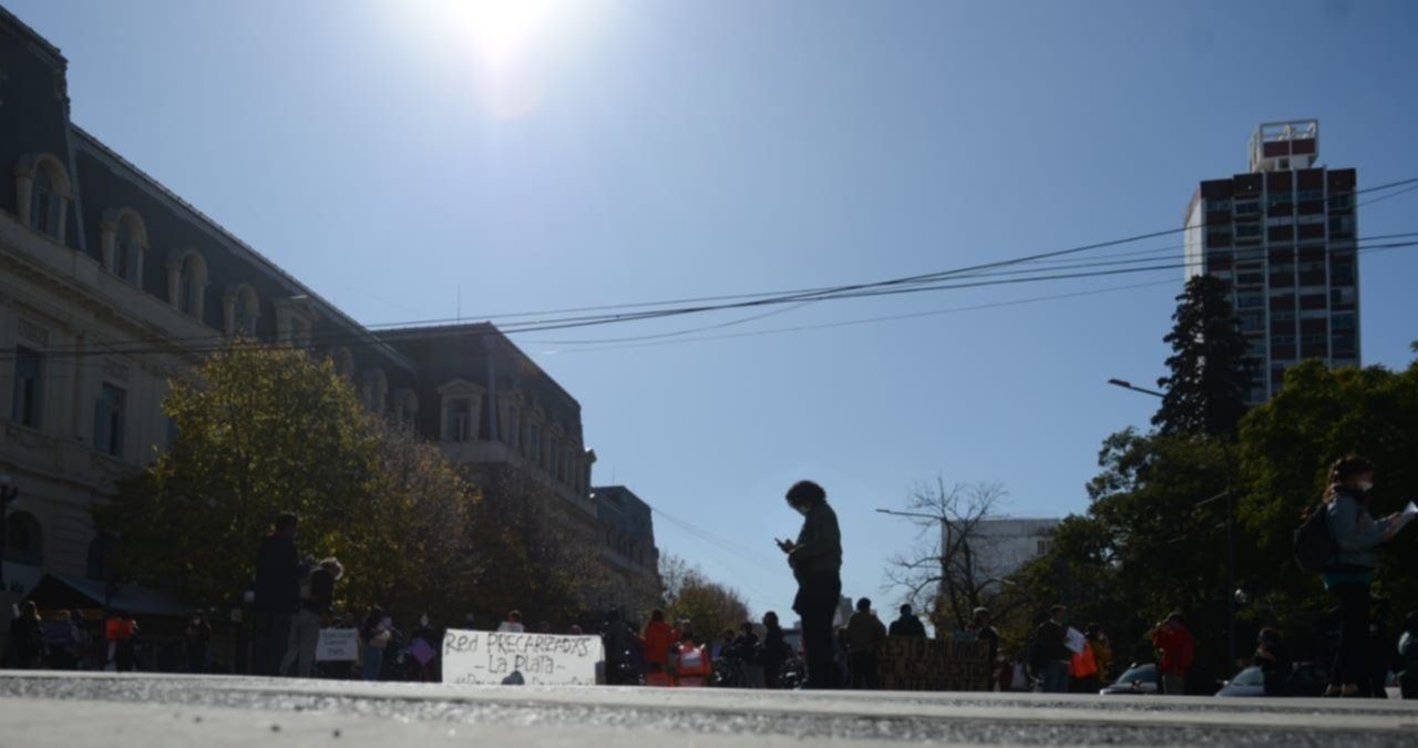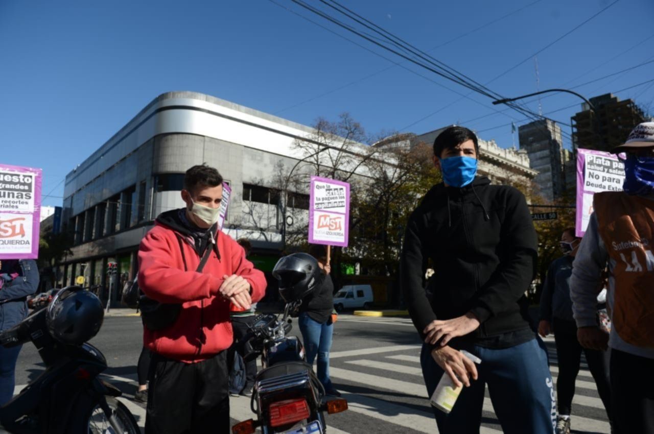 Los trabajadores de distintos sectores que se vieron afectados por la parálisis que impuso el aislamiento social, preventivo y obligatorio concentraron en pleno centro de La Plata para reclamar las reaperturas y las reincoporaciones de quienes fueron despedidos.