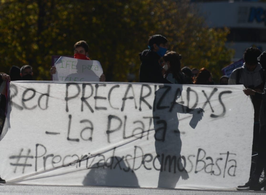 La manifestación fue convocada por la Red Nacional de Jóvenes Precarizadxs e Informales. Lo hicieron respetando el distanciamiento social y el uso de barbijos y arrancó con los trabajadores expresándose en el semáforo de 7 y 50, donde fueron acompañados por los bocinazos de los automovilistas que ocasionalmente pasaban por allí