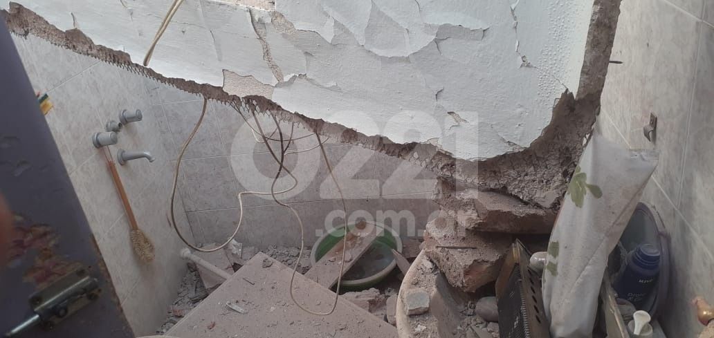 El baño es una de las zonas más afectadas con el cielo raso desplomado sobre la ducha, pero los daños son también llamativos en la habitación y en un pasillo, donde hay una estufa. Entre lo artefactos que pudieron causar la explosión también hay un termotanque aunque no parece dañado.
