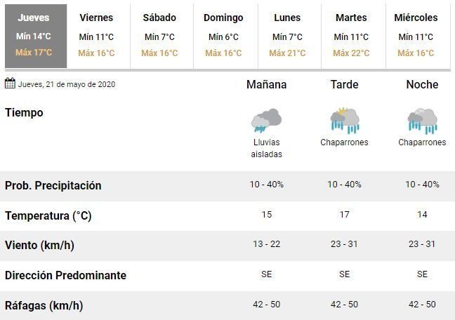 En esa misma línea, advirtieron que se espera un día ventoso, con ráfagas que podrían alcanzar, incluso, velocidades de hasta 50 kilómetros por hora en toda la región.