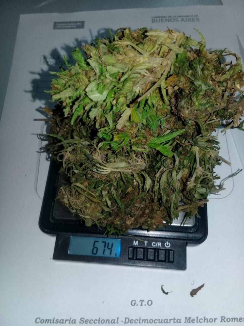 Una vez en la dependencia, se llevó a cabo el testeo orientativo que dio positivo por marihuana, arrojando un pesaje total de 67,4 gramos. Asimismo, se iniciaron las actuaciones correspondiente y se les imputó a los sospechosos el delito de "infracción a la Ley 23.737".