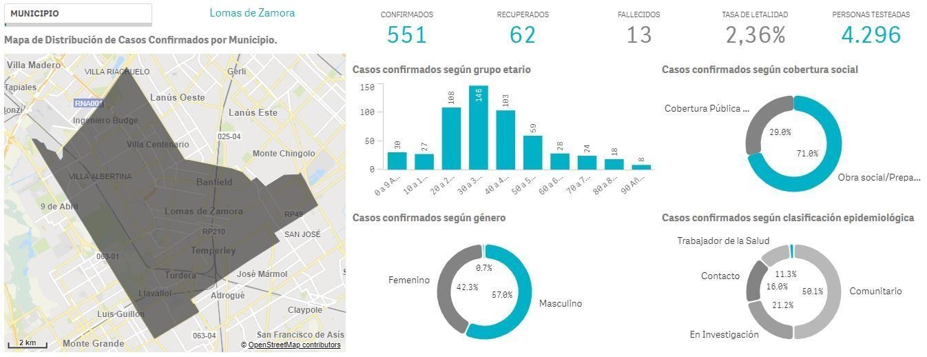 De acuerdo con la información oficial disponible, Lomas de Zamora es uno de los distritos más afectados por el avance del COVID-19. Hasta el momento fueron reportados 551 contagios y solo 62 pacientes ya fueron dados de alta, mientras que otras trece personas perdieron la vida.