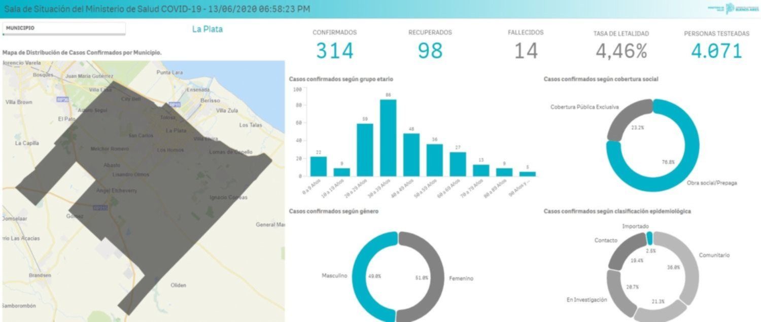 Mientras tanto, la Municipalidad de La Plata mostró una diferencia en los números reflejados en su parte oficial respecto a lo informado en la sala de situación del área de Salud de la Provincia de Buenos Aires. Según las autoridades locales son 312 los infectados en nuestra ciudad y ratifican los 14 fallecidos.