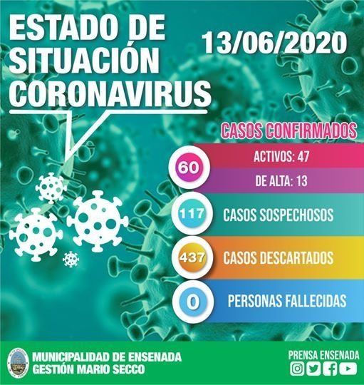 En cuanto a la situación epidemiológica en el resto de la región, según informaron desde la Municipalidad de Berisso, en las últimas 24 horas se confirmaron 7 nuevos casos, sumando un total de 81 contagios de COVID-19 y un fallecido.