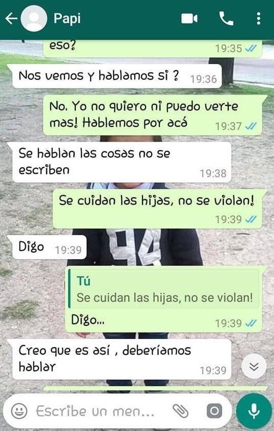 La llamada por WhatsApp que menciona fue grabada por una amiga que estaba con ella. “¿Cómo no voy a estar arrepentido de todo lo que fui? Es algo lógico, obvio que me arrepiento de todo lo que fui de basura”, le dijo R.A.P. El policía le puso como excusa que no había tenido la oportunidad de hablar con ella como sí lo había hecho con su hermana y también le contó que durante su infancia “nadie le puso los puntos”.
