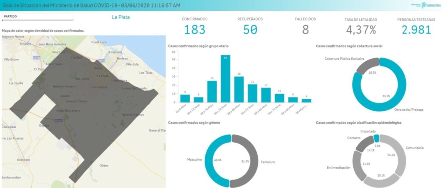 Respecto de los pacientes dados de alta, en el mapa provincial se mencionan 48 casos, aunque la información aportada por la Municipalidad de La Plata, actualizada en base al sistema de información centralizada (SISA), menciona 57 casos.