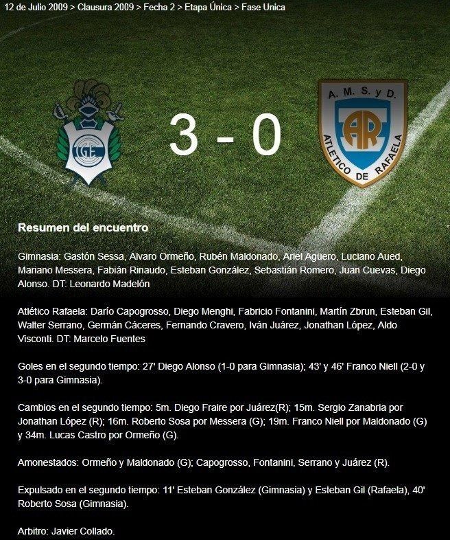 Para los fanáticos de Gimnasia, éste no es un domingo más. Recuerdan una de las jornadas más emocionantes de su historia, cuando el 12 de julio del 2009 el equipo protagonizó una de las remontadas históricas del fútbol argentino. El equipo dirigido por Leo Carol Madelón, había perdido 3 a 0 en el partido de ida de la Promoción frente a Atlético Rafaela y necesitaba un resultado idéntico a su favor para permanecer en Primera División. Iban 43 minutos del segundo tiempo, el equipo mens sana jugaba con nueve hombres y perdía 3 a 1.