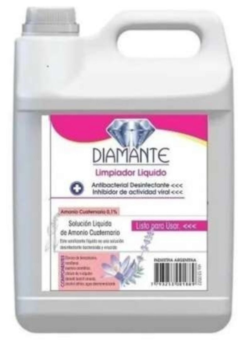 La disposición número 4900/2020 fue publicada este lunes en el Boletín Oficial. Se trata de "DIAMANTE Limpiador Líquido-antibacterial-desinfectante- Amonio cuaternario 0,1%- solución líquida de amonio cuaternario- listo para usar- Industria Argentina" y de "WS Alcohol etílico graduación 96º. Sanitizante”.