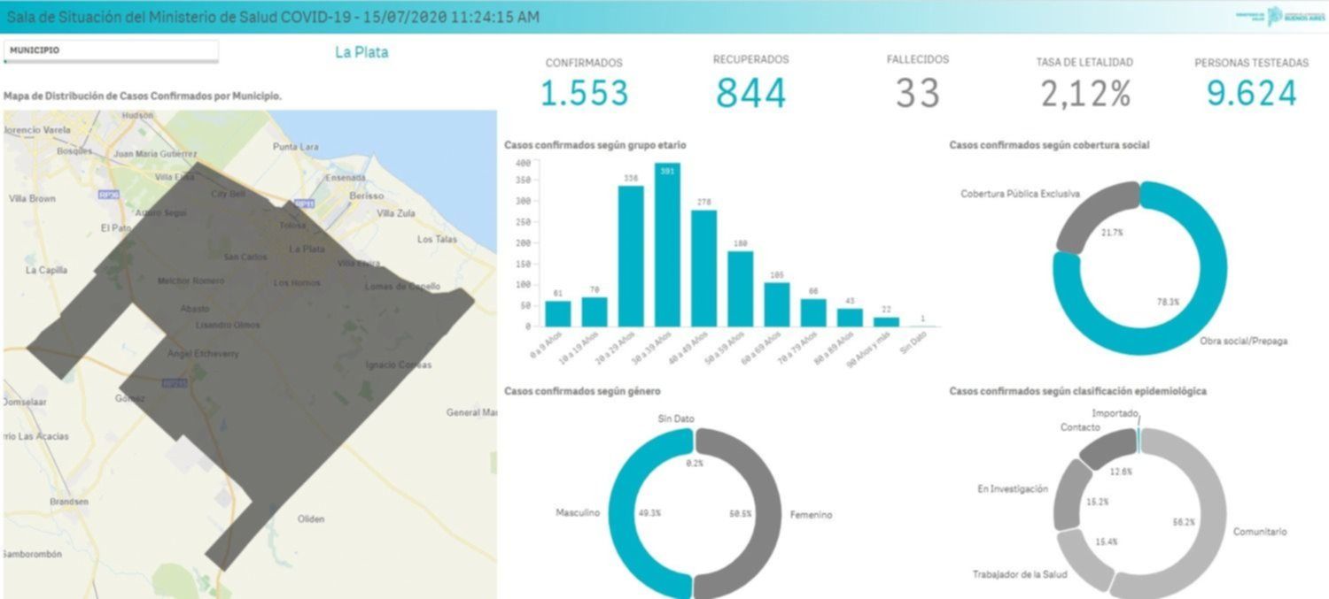 No obstante, en su última actualización, la sala epidemiológica informa que ya hay un total de 1.553 casos de coronavirus en La Plata. Esto significa un aumento de 40 contagios, respecto a los registrado por el área de Salud local en el parte del martes por la noche.