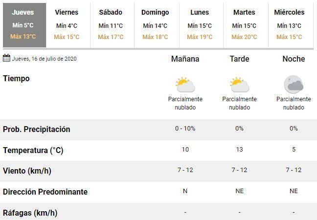 Los expertos del Servicio Meteorológico Nacional (SMN), en tanto, indicaron que el jueves comenzó con una mínima de 5°C y la máxima podría alcanzar los 13°C.