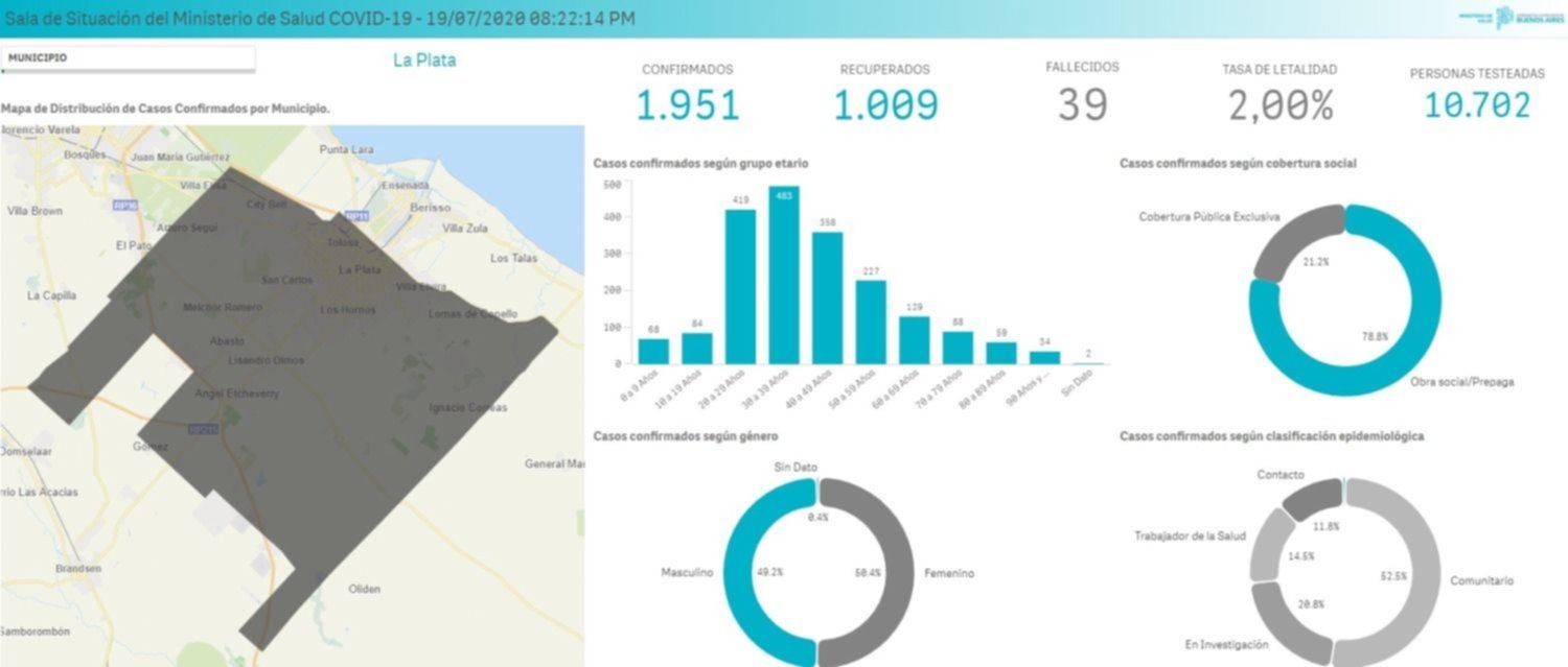 Las autoridades del Ministerio de Salud de la Provincia de Buenos Aires actualizaron la información disponible en la Sala de Situación sobre el avance del COVID-19 e indicaron que el número de fallecidos en la ciudad es de 39. En tanto, 1.009 pacientes ya fueron dados de alta.