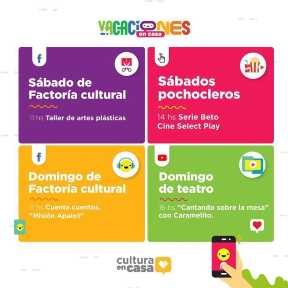 Del 18 de julio al 2 de agosto, grandes y chicos podrán acceder distintas actividades: factoría cultural, experimentar cuentos animados, ver películas, obras de teatro, cantar y cocinar y todo desde la comodidad del hogar.