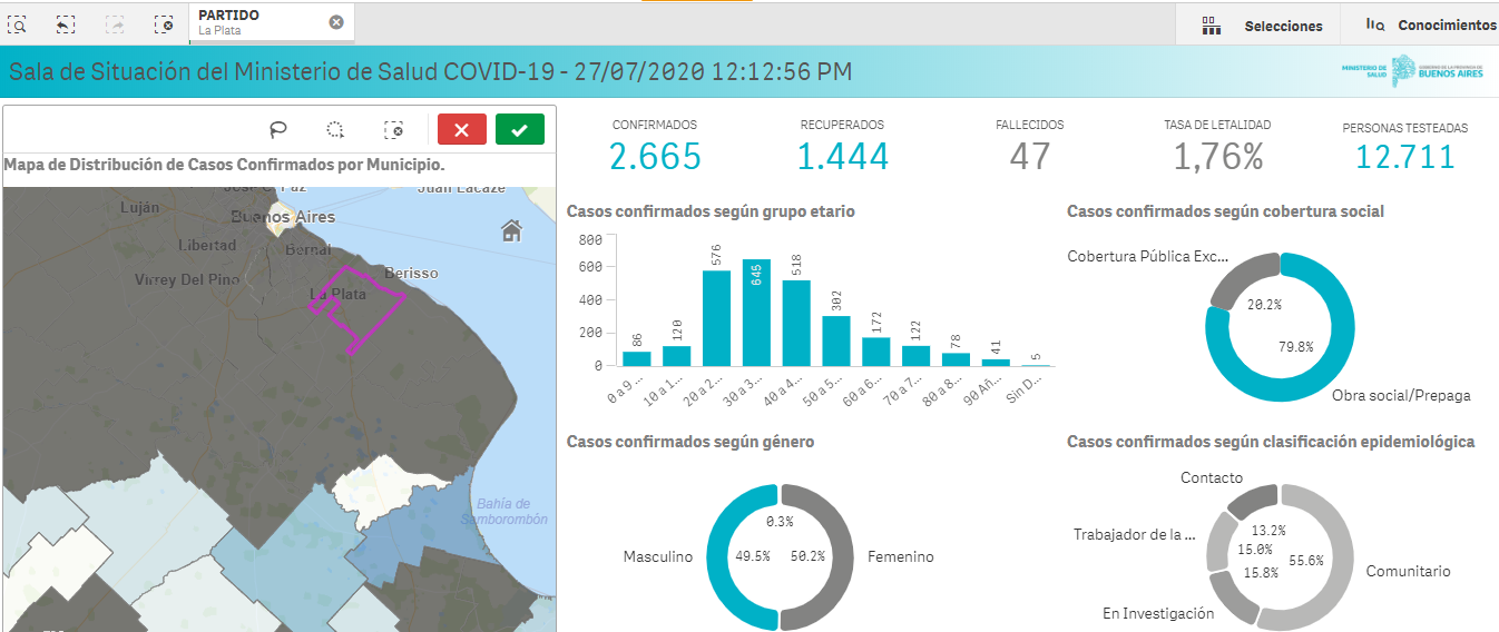La tasa de letalidad de la enfermedad en La Plata es de 1,74% en tanto desde que empezó la pandemia ya se realizaron 12.711 hisopados.