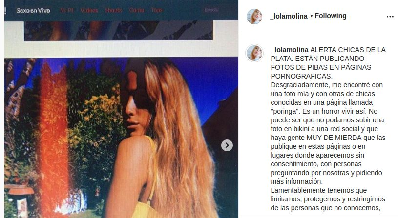 Más allá de que tras sus reportes Poringa bajó sus fotos, Lola y otras seis jóvenes decidieron hacer la denuncia. La radicaron en el gabinete de Delitos Informáticos de la DDI La Plata, donde relataron lo sucedido y aportaron las capturas de pantalla. Y esperan que más personas que se acerquen a hacer lo mismo. “Es algo sumamente difícil y peligroso. No quiero que quede en la nada. No puedo subir una foto en bikini porque me van a publicar en una página pornográfica, jamás me iba a imaginar algo así, no puedo subir nada. De hecho hay unas fotos de las chicas de City Bell que me escribieron que se les ve solo la cara. Una foto normal subida ahí y los comentarios desagradables pidiendo más fotos, preguntando quiénes son. Barbaridades”.