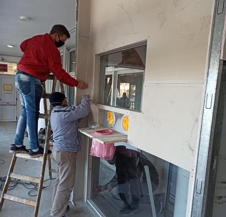 Trabajadores del Astillero hicieron una cabina para hisopados en el Hospital de Niños