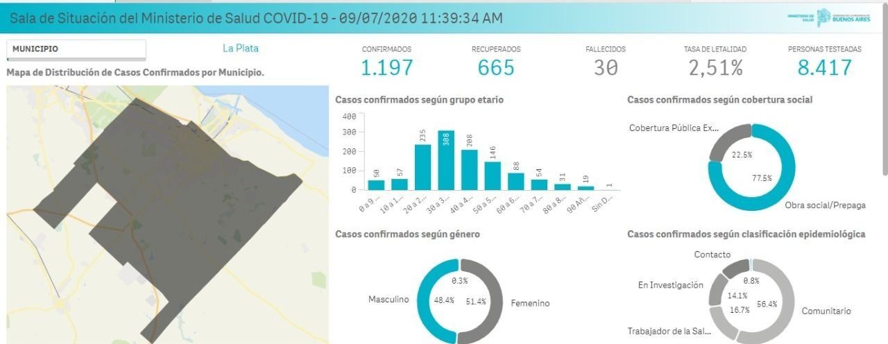 La curva de ascenso en los casos de coronavirus en La Plata se profundizó este jueves, cuando la Sala de Situación del Ministerio de Salud bonaerense actualizó el reporte con un nuevo fallecido y 43 pacientes con diagnósticos positivo, los cuales elevan las cifras a 30 muertos y 1.197 pacientes registrados desde que el 26 de marzo se detectaran los primeros dos.