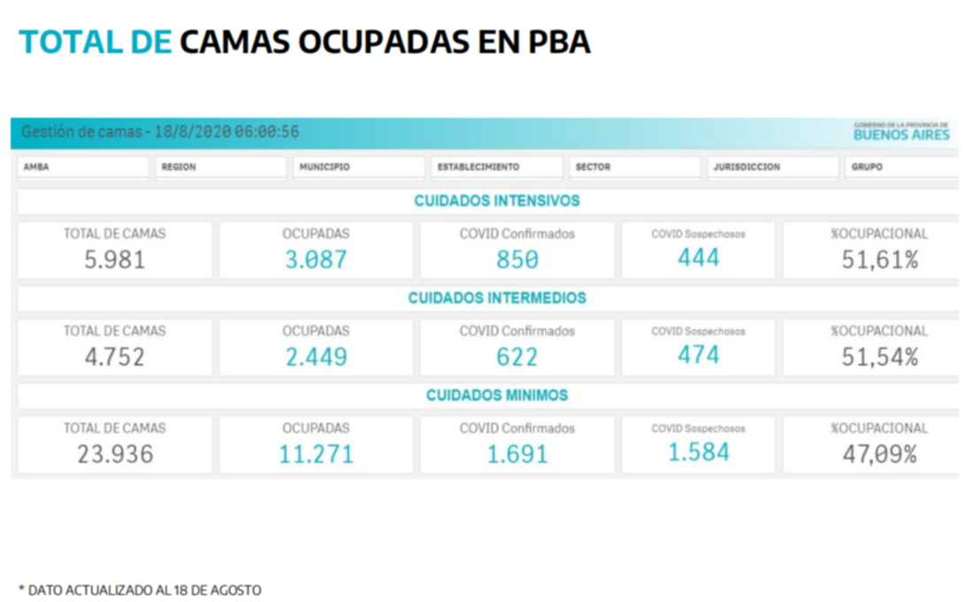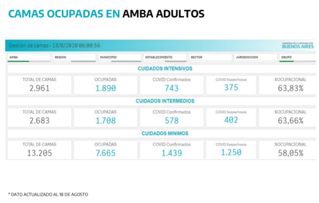 Sin embargo esa cifra es del total de la Provincia, por lo que la fotografía puede ser más complicada si se toma únicamente el AMBA, donde hay algo más de tres mil camas y el nivel de ocupación promedio es de casi el 64%. "Pero esa cifra es un promedio -dijo Gollán-, en el sector privado la ocupación es del 59% y en el público llega al 68%".