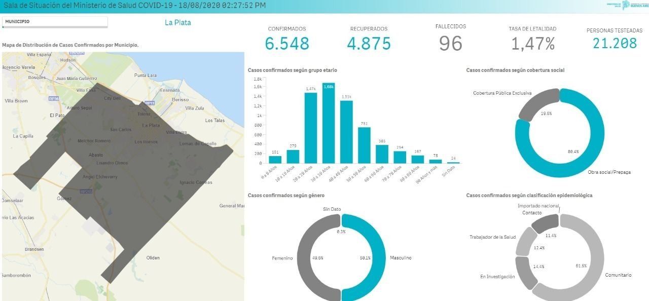 El dato alentador es que 4.875 personas se recuperaron de la enfermedad y recibieron el alta médica. En esa línea, las autoridades sanitarias destacaron que se realizaron 21.208 testeos. Los números del coronavirus son el reflejo del avance del virus en La Plata y la tasa de letalidad del virus es del 1,47%.