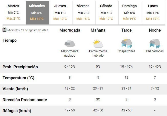 De acuerdo con las previsiones del tiempo, se espera que el frío se haga sentir con más fuerza a lo largo de la semana, con mínimas que 5°C el miércoles, 1°C el jueves y apenas 2°C el próximo viernes.