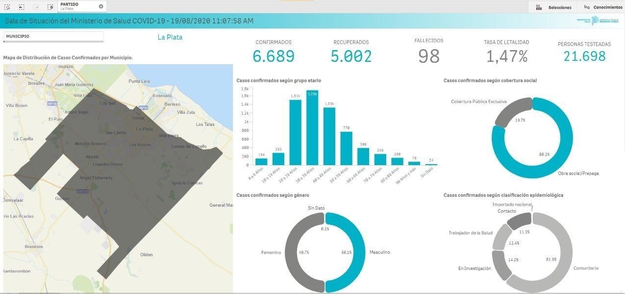 El panorama fue actualizado por la sala de situación del Ministerio de Salud bonaerense, donde se reportaron los últimos decesos: ya son 98 las personas que perdieron la vida tras contraer la enfermedad. La tasa de letalidad es del 1,47% en la capital provincial.