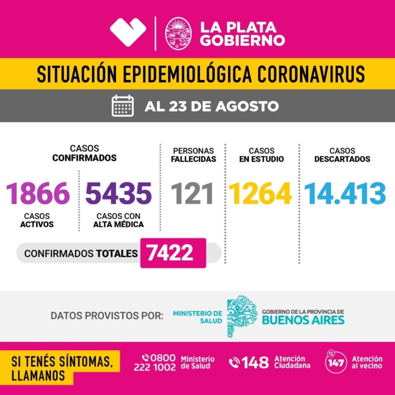 Más allá del número de víctimas fatales, cabe destacar que ya son 5.523 las personas que superaron la enfermedad en La Plata y hasta el momento se realizaron un total de 23.403 testeos. A su vez, son un poco más de 1.800 los casos activos en nuestra ciudad y la tasa de letalidad del virus ronda el 1,61%.