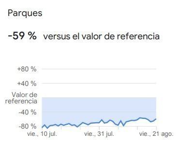 En lo que respecta a los parques, la movilidad cayó un 59% en las últimas seis semanas, pese a que los espacios verdes tuvieron gran afluencia, especialmente durante los fines de semana. En este aspecto se incorporaron los datos de parques nacionales, playas públicas, puertos deportivos, parques para perros, plazas y jardines públicos.
