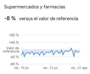 Pese a que se trata de servicios esenciales, el movimiento en supermercados y farmacias tuvo una merma del 8%. Acá se tiene en cuenta a los mercados y depósitos de alimentos, mercados de productores, tiendas de comida especializadas y farmacias.