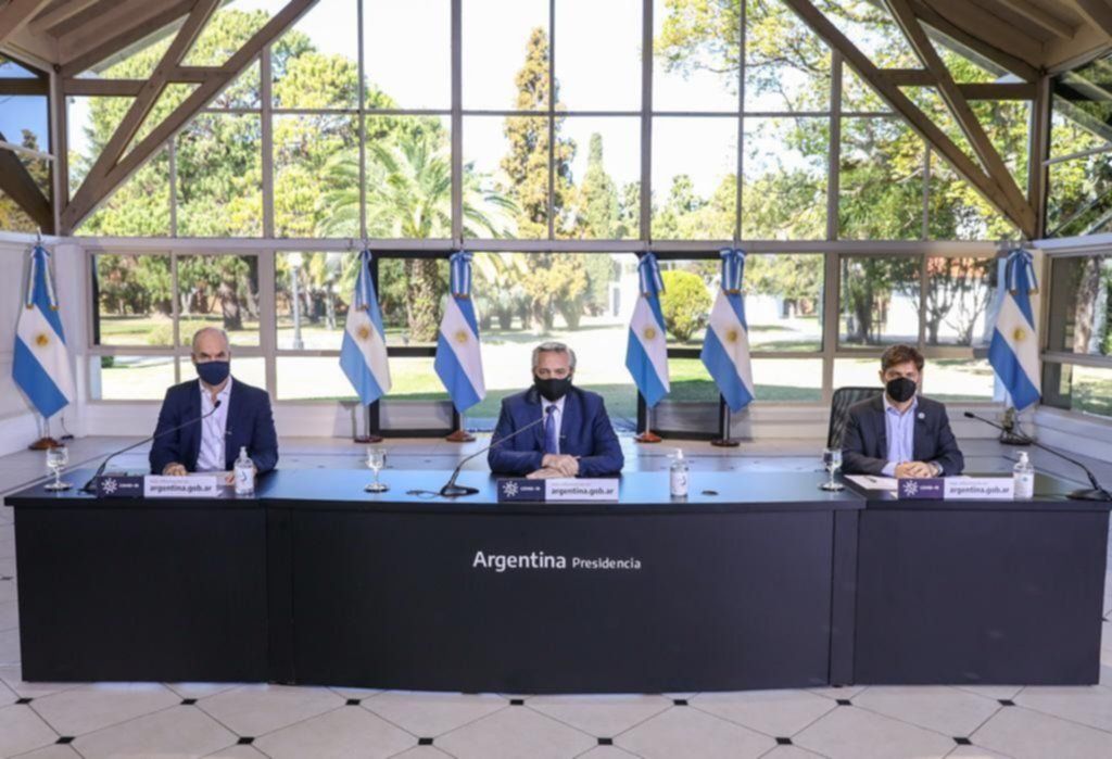 El presidente Alberto Fernández se encuentra reunido en la residencia de Olivos junto al gobernador bonaerense, Axel Kicillof, y el jefe de Gobierno porteño, Horacio Rodríguez Larreta. A diferencia de las veces anteriores, los mandatarios habrían elegido difundir los detalles de la continuación del confinamiento a traés de un comunicado de prensa, que sería difundido en las plataformas digitales de las tres administraciones.