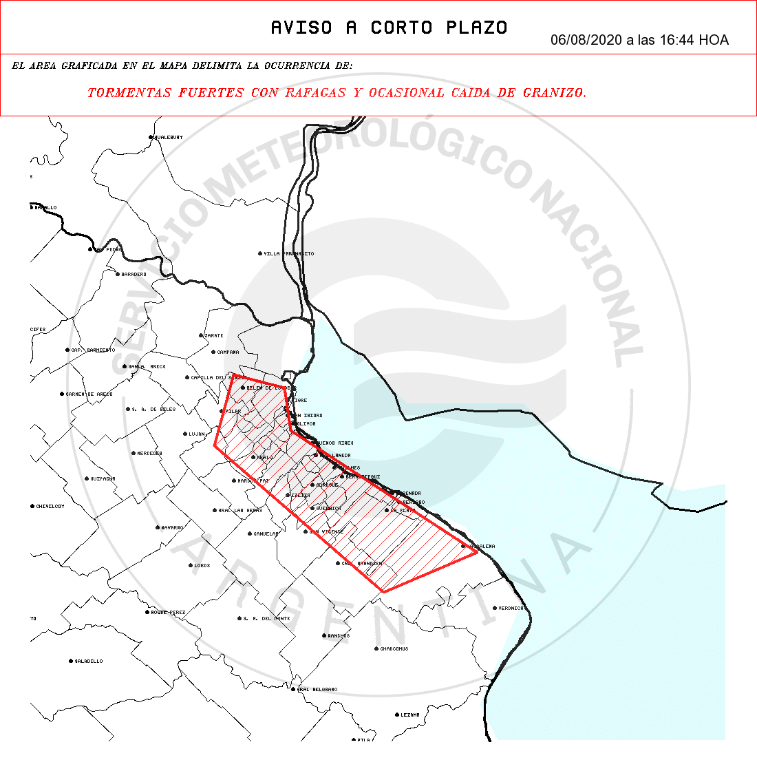 El aviso emitido poco antes de las 17 tiene una vigencia de al menos tres horas, pero no se descarta que pueda ser extendido en el transcurso de las próximas horas.
